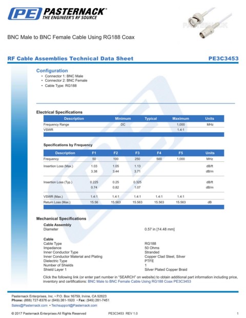 RF Cable Assemblies Technical Data Sheet PE3C3453