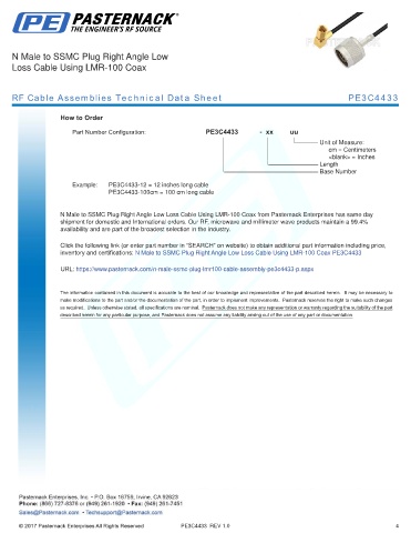 RF Cable Assemblies Technical Data Sheet PE3C4433