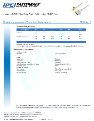 RF Cable Assemblies Technical Data Sheet PE3C4416