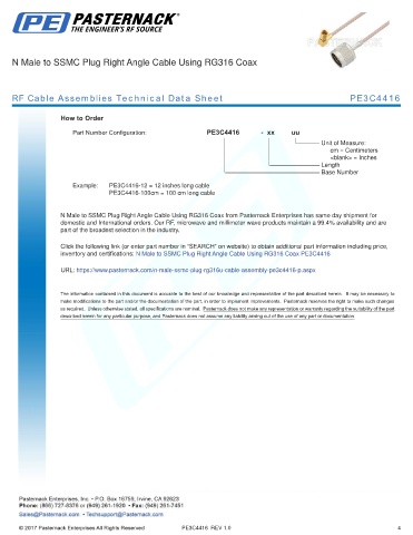 RF Cable Assemblies Technical Data Sheet PE3C4416