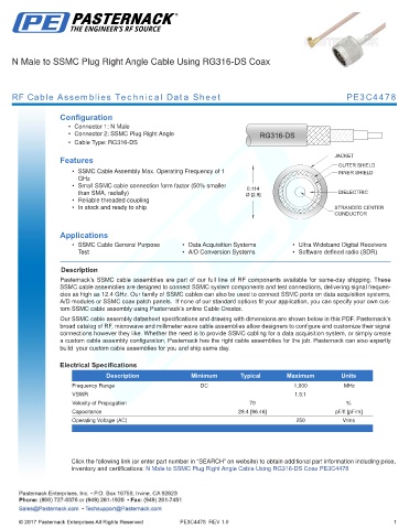 RF Cable Assemblies Technical Data Sheet PE3C4478