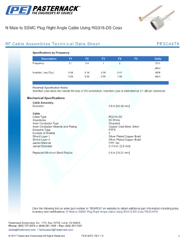 RF Cable Assemblies Technical Data Sheet PE3C4478