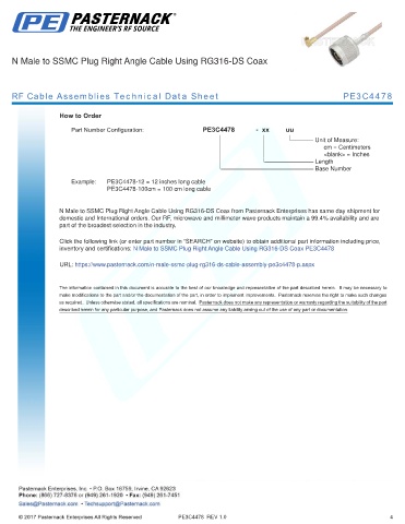 RF Cable Assemblies Technical Data Sheet PE3C4478