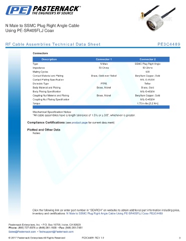 RF Cable Assemblies Technical Data Sheet PE3C4489