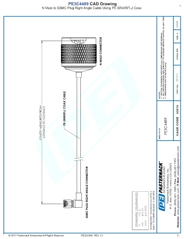 LENGTH MEASURED FROM CONTACT TO CONTACT PE-SR405FLJ COAX CABLE DWG TITLE PE3C4489 CAGE CODE 53919
