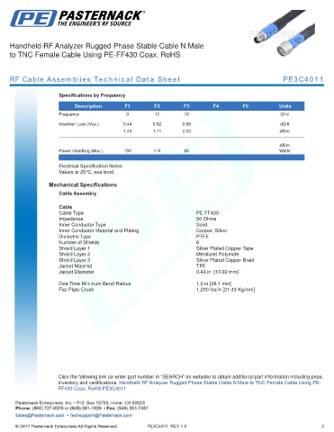 RF Cable Assemblies Technical Data Sheet PE3C4011
