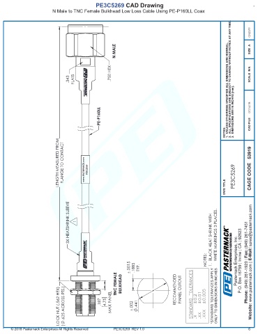any representation or warranty regarding the suitability of the part described herein for any particular purpose, and Pasternack does not assume any liability arising out of the use of any part or documentation. -
