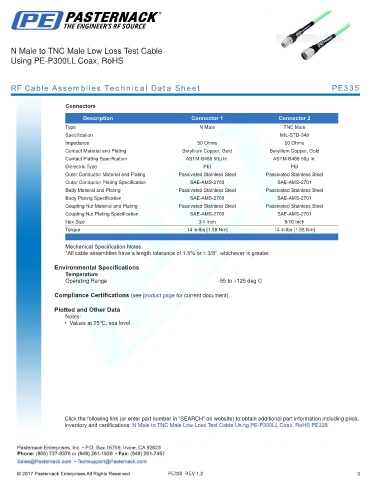 RF Cable Assemblies Technical Data Sheet PE335