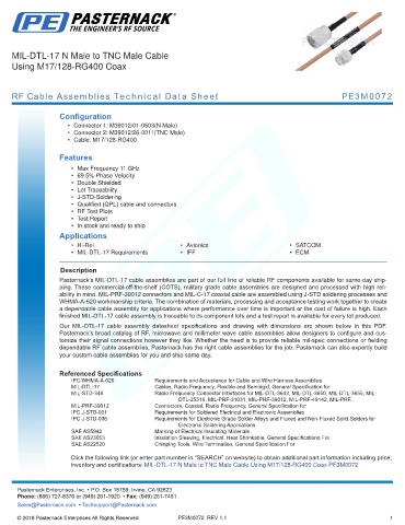 RF Cable Assemblies Technical Data Sheet PE3M0072