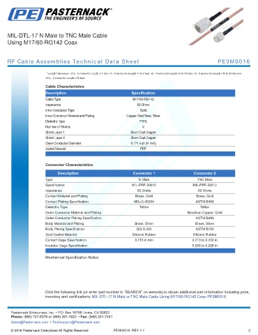 RF Cable Assemblies Technical Data Sheet PE3M0016
