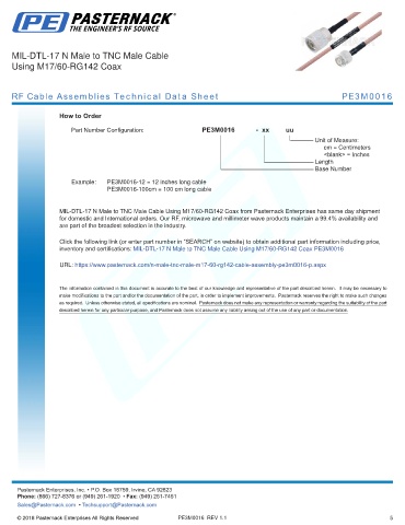 RF Cable Assemblies Technical Data Sheet PE3M0016