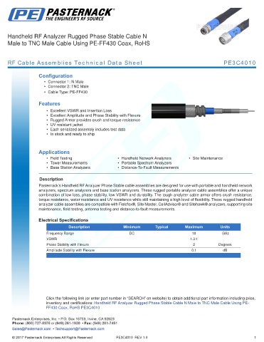 RF Cable Assemblies Technical Data Sheet PE3C4010