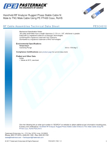 RF Cable Assemblies Technical Data Sheet PE3C4010