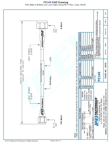 PE349 CAD Drawing TNC Male to N Male Low Loss Cable Using PE-P142LL Coax, RoHS © 2014 Pasternack Enterprises All Rights Reserved PE349 REV 1.0 4
