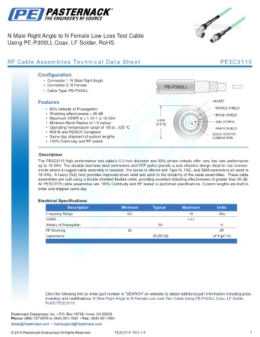 RF Cable Assemblies Technical Data Sheet PE3C3115