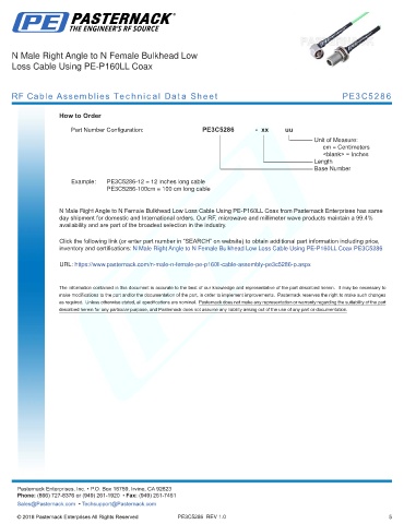 any representation or warranty regarding the suitability of the part described herein for any particular purpose, and Pasternack does not assume any liability arising out of the use of any part or documentation.