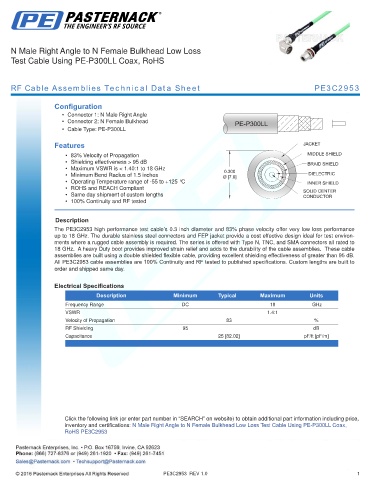 RF Cable Assemblies Technical Data Sheet PE3C2953