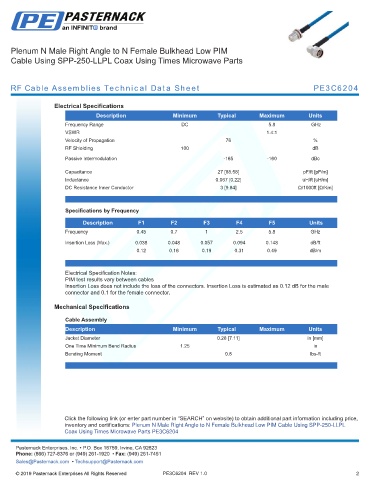 any representation or warranty regarding the suitability of the part described herein for any particular purpose, and Pasternack does not assume any liability arising out of the use of any part or documentation.
