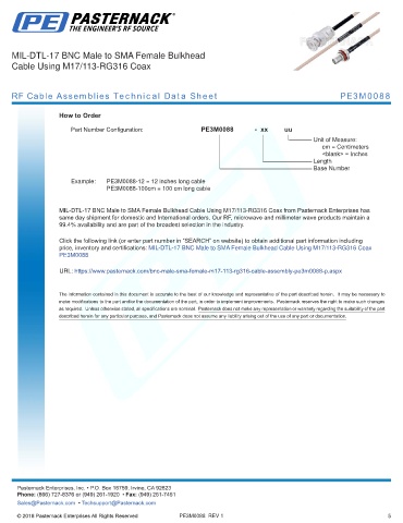 any representation or warranty regarding the suitability of the part described herein for any particular purpose, and Pasternack does not assume any liability arising out of the use of any part or documentation.