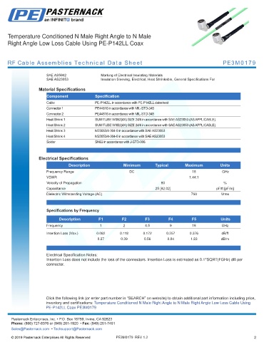 RF Cable Assemblies Technical Data Sheet PE3M0179