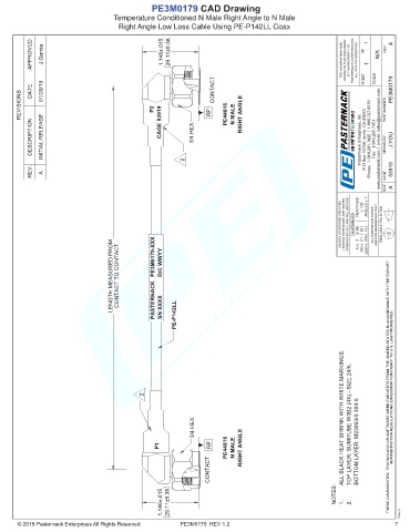 REVISIONS DATE 01/29/19 P2 RP CONTACT PE44816 N MALE RIGHT ANGLE PART NUMBER PE3M0179