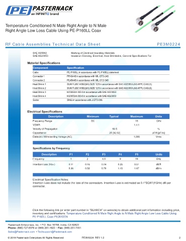 RF Cable Assemblies Technical Data Sheet PE3M0224