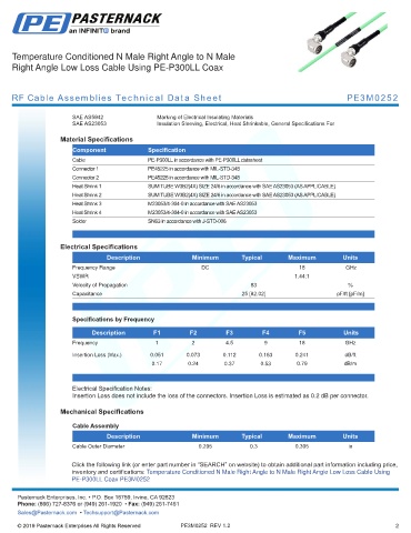RF Cable Assemblies Technical Data Sheet PE3M0252