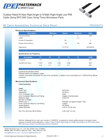 RF Cable Assemblies Technical Data Sheet PE3C6373