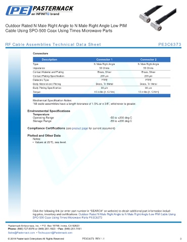 RF Cable Assemblies Technical Data Sheet PE3C6373