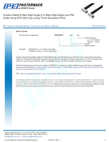 any representation or warranty regarding the suitability of the part described herein for any particular purpose, and Pasternack does not assume any liability arising out of the use of any part or documentation.