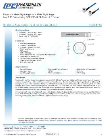 RF Cable Assemblies Technical Data Sheet PE3C4145
