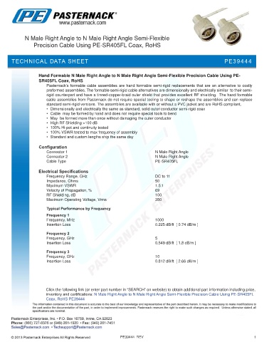 inventory and certifications: N Male Right Angle to N Male Right Angle Semi-Flexible Precision Cable Using PE-SR405FL