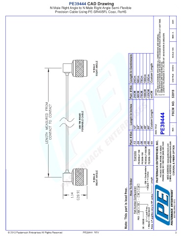 PE39444 CAD Drawing N Male Right Angle to N Male Right Angle Semi-Flexible Precision Cable Using PE-SR405FL Coax, RoHS © 2013 Pasternack Enterprises All Rights Reserved PE39444 REV 3