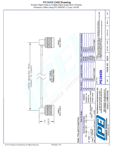 PE39458 CAD Drawing N Male Right Angle to N Male Right Angle Semi-Flexible Precision Cable Using PE-SR405FLJ Coax, RoHS © 2013 Pasternack Enterprises All Rights Reserved PE39458 REV 3