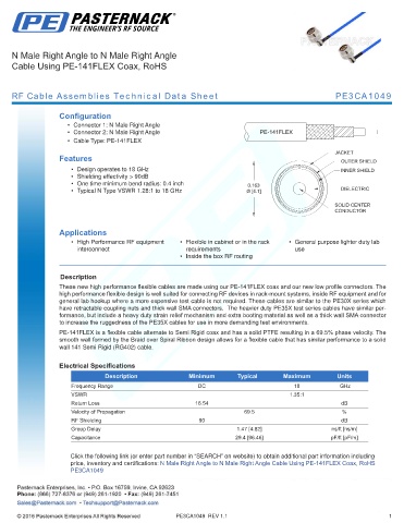 RF Cable Assemblies Technical Data Sheet PE3CA1049