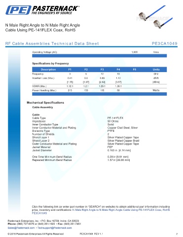 RF Cable Assemblies Technical Data Sheet PE3CA1049