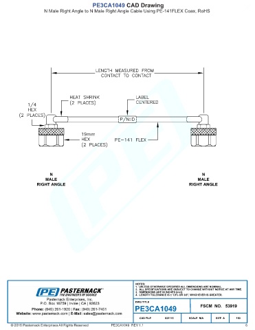 PE3CA1049 CAD Drawing N Male Right Angle to N Male Right Angle Cable Using PE-141FLEX Coax, RoHS PE3CA1049 REV 1.1 6