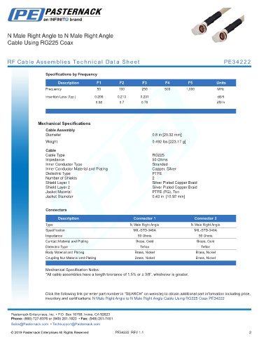 RF Cable Assemblies Technical Data Sheet PE34222