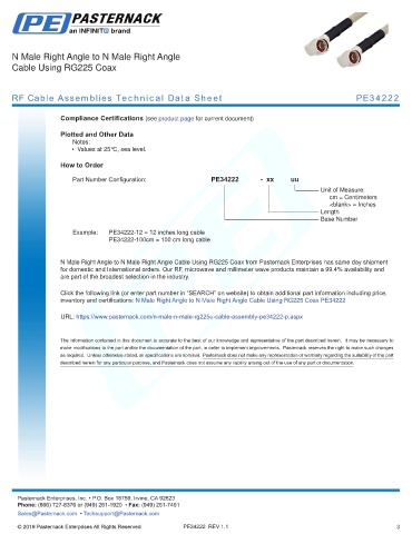 any representation or warranty regarding the suitability of the part described herein for any particular purpose, and Pasternack does not assume any liability arising out of the use of any part or documentation.