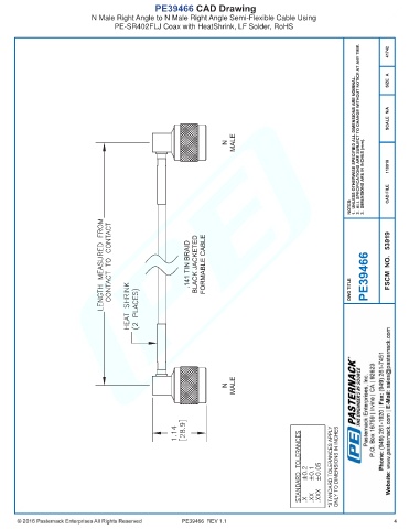 PE39466 CAD Drawing N Male Right Angle to N Male Right Angle Semi-Flexible Cable Using PE-SR402FLJ Coax with HeatShrink, LF Solder, RoHS PE39466 REV 1.1 4