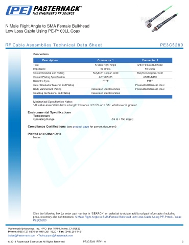 RF Cable Assemblies Technical Data Sheet PE3C5280