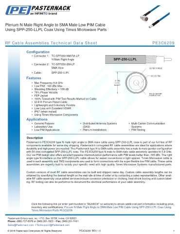 any representation or warranty regarding the suitability of the part described herein for any particular purpose, and Pasternack does not assume any liability arising out of the use of any part or documentation.