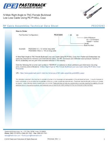 any representation or warranty regarding the suitability of the part described herein for any particular purpose, and Pasternack does not assume any liability arising out of the use of any part or documentation.