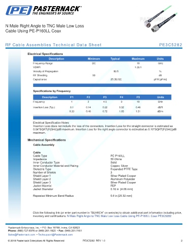 RF Cable Assemblies Technical Data Sheet PE3C5282