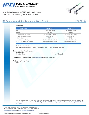 RF Cable Assemblies Technical Data Sheet PE3C5284