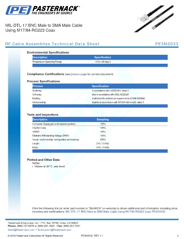 RF Cable Assemblies Technical Data Sheet PE3M0033