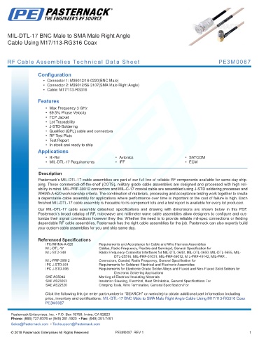 RF Cable Assemblies Technical Data Sheet PE3M0087