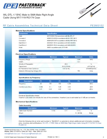 RF Cable Assemblies Technical Data Sheet PE3M0102