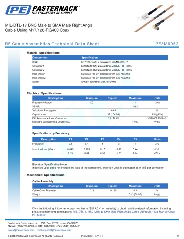RF Cable Assemblies Technical Data Sheet PE3M0062