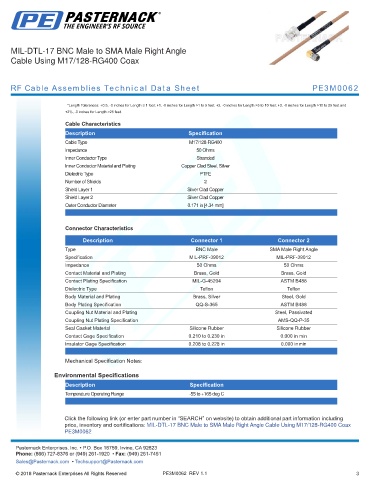 RF Cable Assemblies Technical Data Sheet PE3M0062